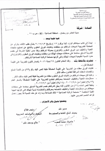 أعفاء مبيعات نفايات الورق من الضريبة على القيمة المضافة . الحصول على الرابط Facebook X Pinterest بريد إلكتروني التطبيقات الأخرى - أبريل 10, 2017 قراءة المزيد
